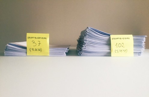 #Selektibitatea-n 139 azterketa zuzendu ditut. 102tan (% 73,3) hutsen bat dago #ergatiboa-rekin.