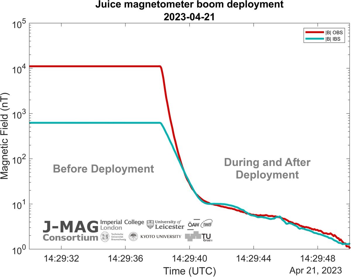 The magnetometer boom (J-MAG) recorded the change in magnetic field as it deployed.