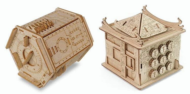 These are high-end wooden puzzle boxes that are not easy to solve and can later be repurposed into awesome gift boxes.
