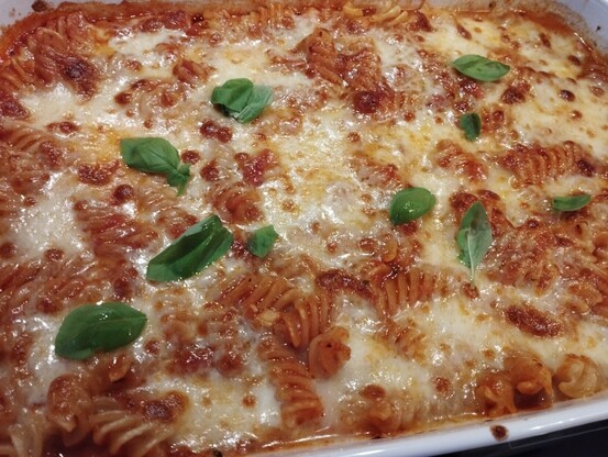 So Frau ist weg, die Kinder übernehmen die Essens Planung, also gibt es Fussili e Pomodoro Al Forno und Milchreis mit Zimt und Zucker. Nen Guten!