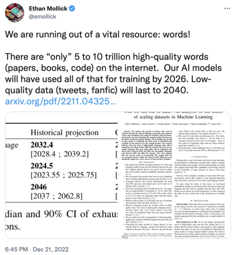 This framing is so gross. To see (human!) generated (ahem: English) text to be a "vital resource" you have to be deeply committed to the project of building AI models and in this particular way.