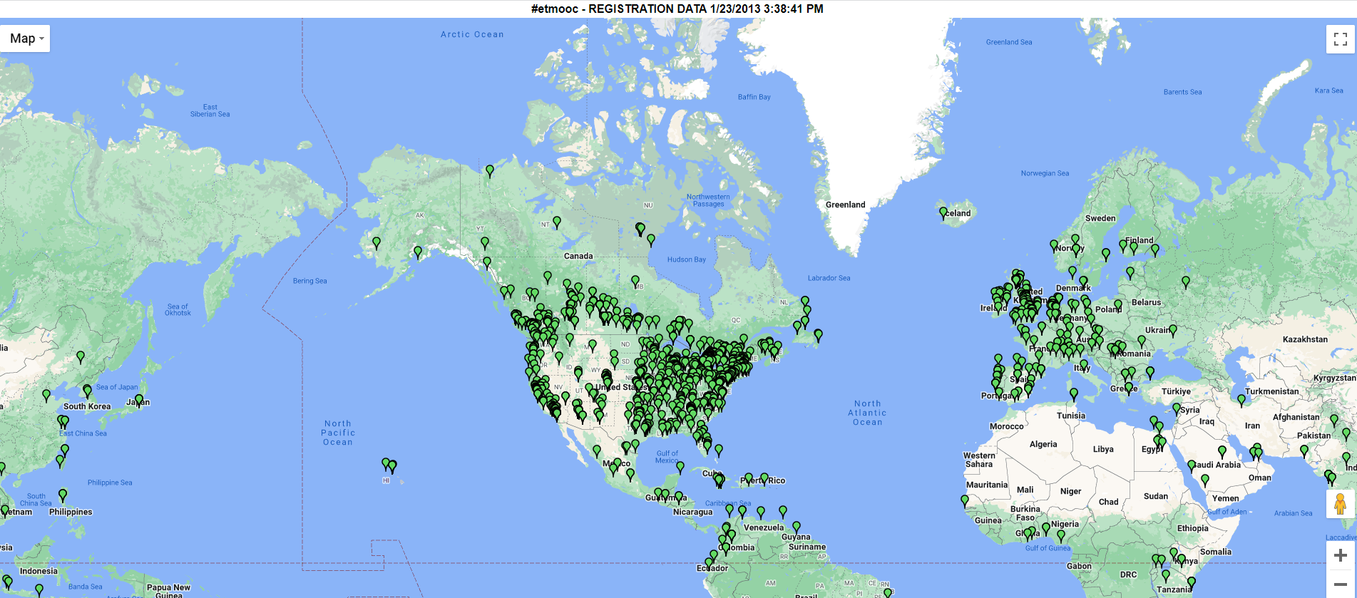 This #map shows participants who registered for the #ETMOOC in January 2013. I was one of them.