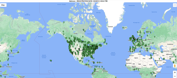 Here's the #ETMOOC 2013 participation map. https://mapalist.com/map/de19f75b-bb05-43b2-b9f8-26ebc3912100