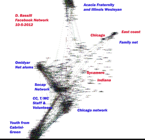 In 2012 I created this map of who I was connected w on Facebook. This was prior to me meeting #clmooc & #etmooc. I've been trying connect people from these networks w each other, creating a larger network supporting kids.
