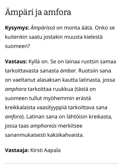 Yks miun suosikkietymologia on se, että ämpärin ja amforan juuret on samassa sanassa.