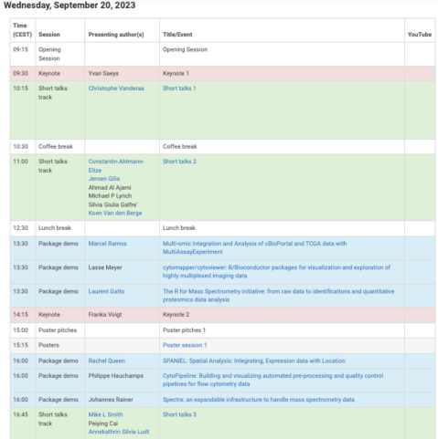 #EuroBioC2023 Schedule: https://eurobioc2023.bioconductor.org/schedule/