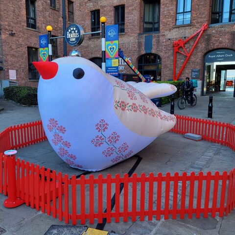 There are these inflatable birds (maybe 12) are dotted around #Liverpool. It might be to do with the #EuroFestival?