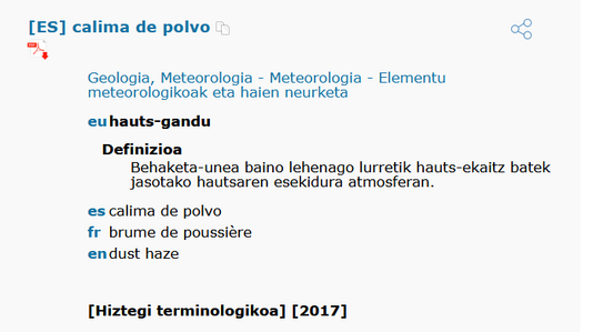 💡 Eguraldiaren iragarpenaren harira, hona hemen #Euskalterm-etik hautatu dugun «hauts-gandu» sarrera [2/2]