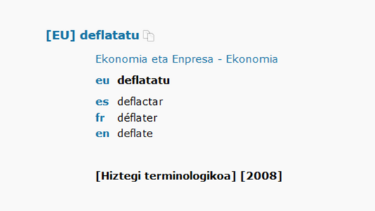💰 Ingelesaren eta frantsesaren eredura, «DEFLATATU» eman du #Euskalterm-ek, ez «deflaktatu»
