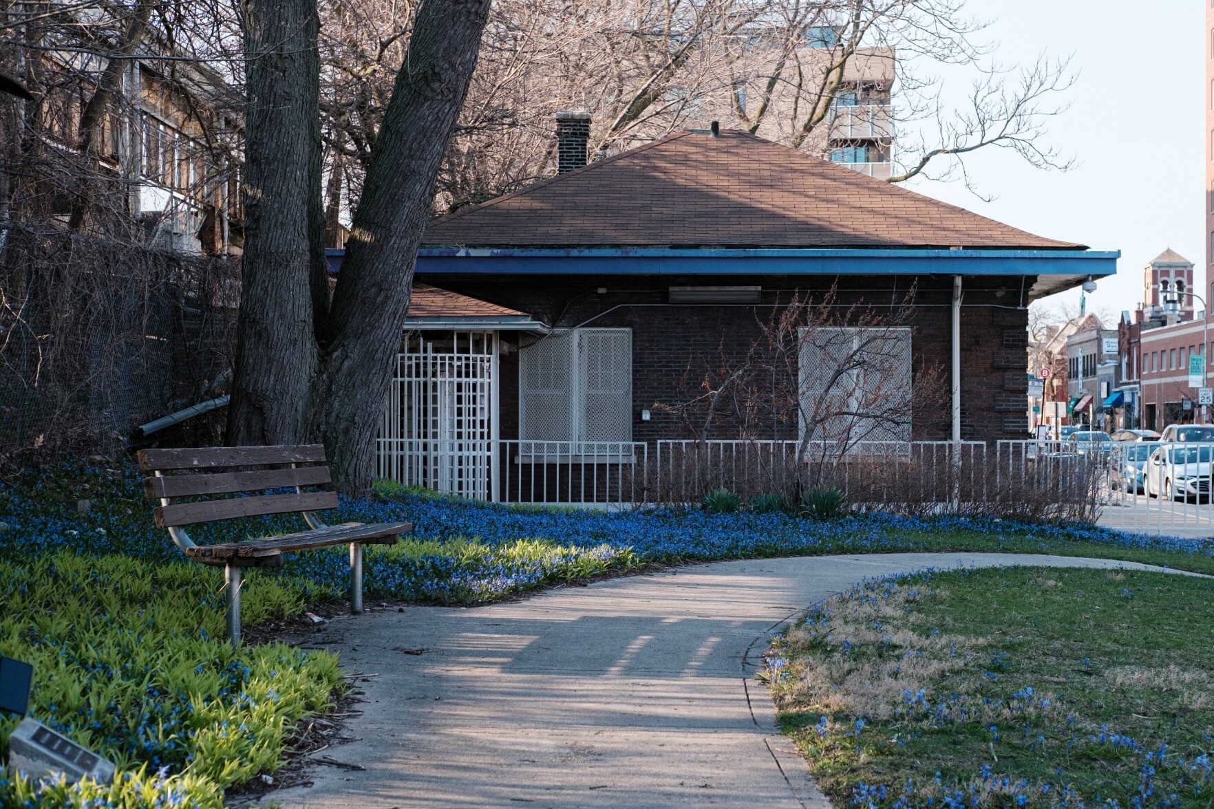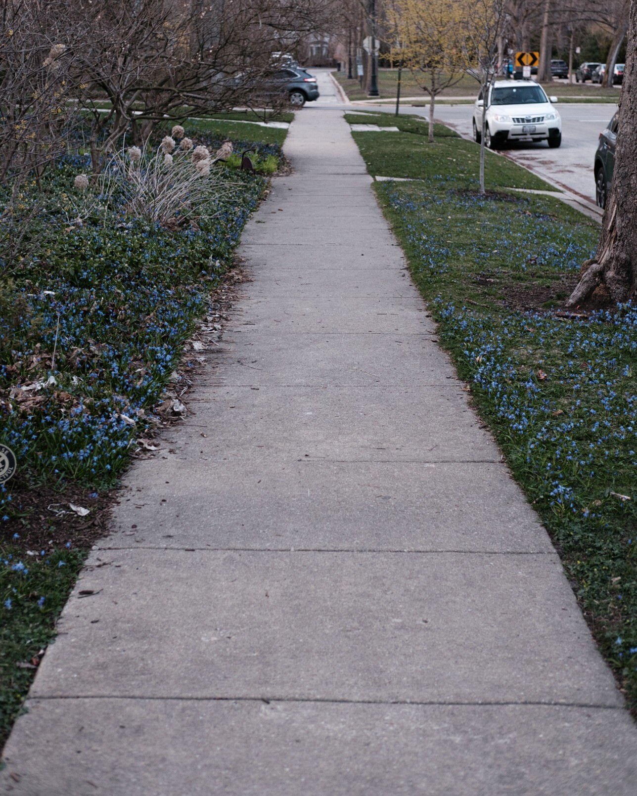 Spring giving the Purple Line in Evanston some extra ornamentation this week. Evanston has been invaded by violet's all over the city with a lot of people's yards entirely taken over.