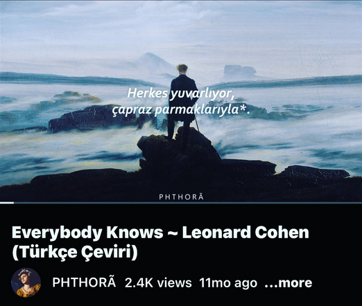 Herkes Biliyor! (ama susuyor ve sadece izliyor!) #EverybodyKnows ~ #LeonardCohen (Türkçe Çeviri) https://youtu.be/uOZCcIujpgU @phthora via @YouTube https://youtube.com/watch?v=uOZCcIujpgU&feature=share
