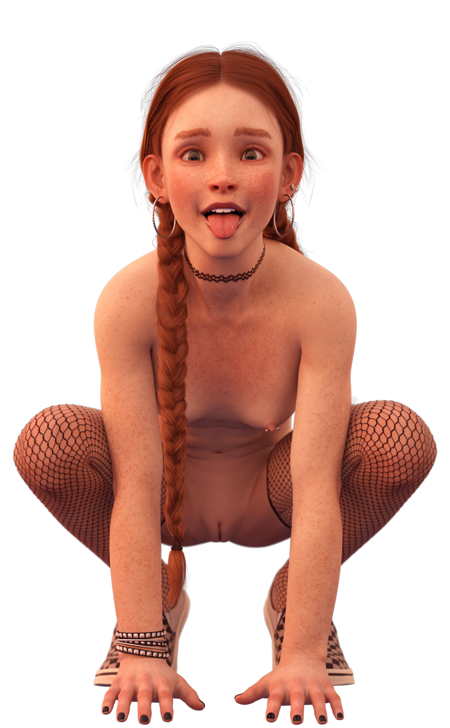 #girl #loli #3d #redhead #braids #redhair #ginger #smiling #sitting #transparent #smile #choker #tongue #teenager #teen #greeneyes #blush #freckles #png #braces #openmouth #metalhead #piercing #earrings #navel #stockings #smallbreasts #slip-ons #nailpolish #nipples #exited