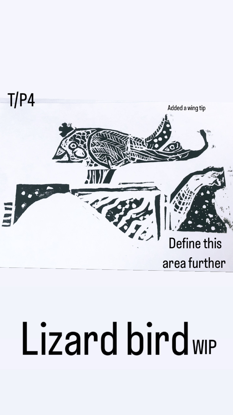 #art #expression #mastoart #twitter #wip #bird #lizard #linocut #expessionism #printprocess #obscurereference #social