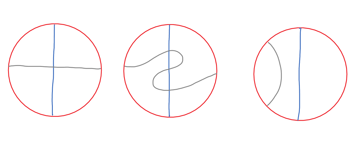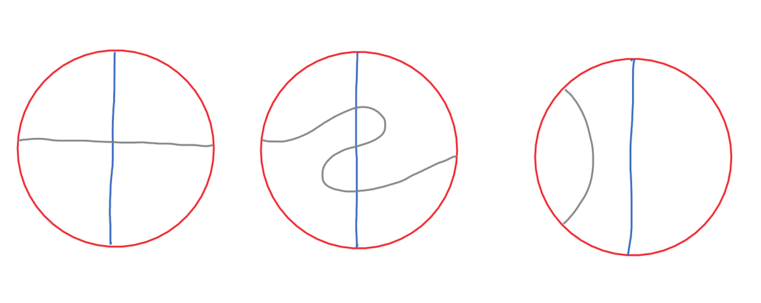 Take two (or more) lines inside a circle that begin and end at the edge and are not allowed to cross themselves, only each other. How many intersection points do they have, based on where their endpoints are?