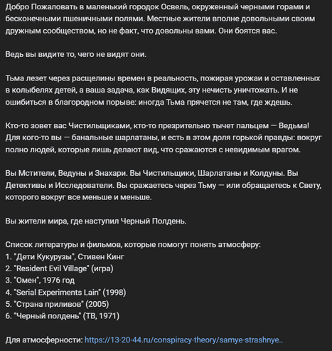 Но я очень давно хотела создать город, состоящий из сумасшедших, и взять закрытые локации с упором на детектив\квест.