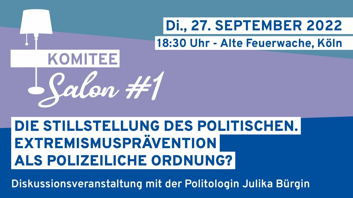 🎊 SaveTheDate: Am Dienstag, 27.09. startet unser neues Veranstaltungsformat, der #KomiteeSalon: Wir werden unter dem Motto "Die Stillstellung des Politischen" mit Politologin Julika Bürgin einen kritischen Blick auf #Extremismustheorie, #fdGO und #wehrhafteDemokratie werfen.