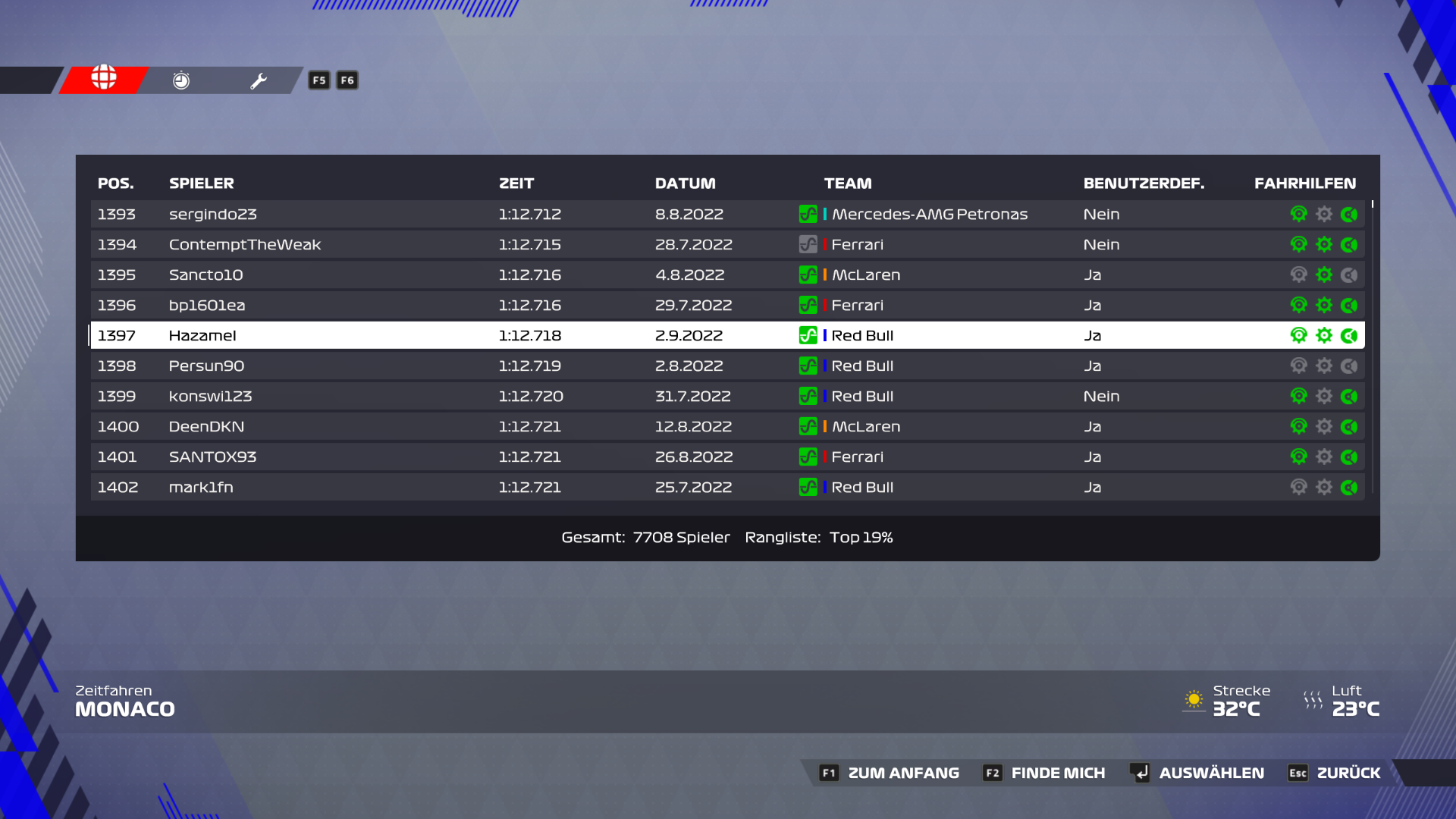 Top 20% in Monaco. Und ich hasse Monaco. Und ich hatte noch Fehler drin. #f122