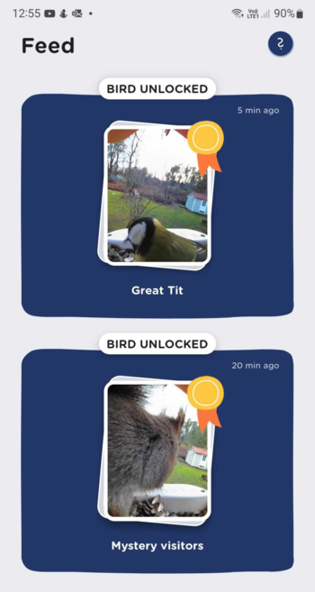 Nu kom första vykorten! Ekorrens rygg var första, och sen en liten film på en talgoxe. Hurra! #birdbuddy #fågelmatare #fågelmatning