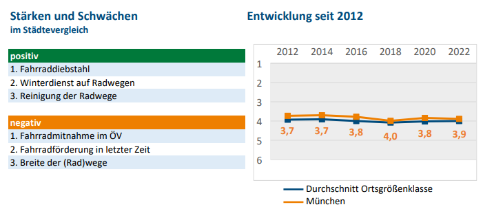 Die Stärken und Schwächen von #Muenchen im #FahrradKlimatest im Überblick: