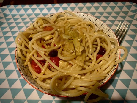 Petit bol de pâtes tomates cerises artichaut piment et ail #fait maison