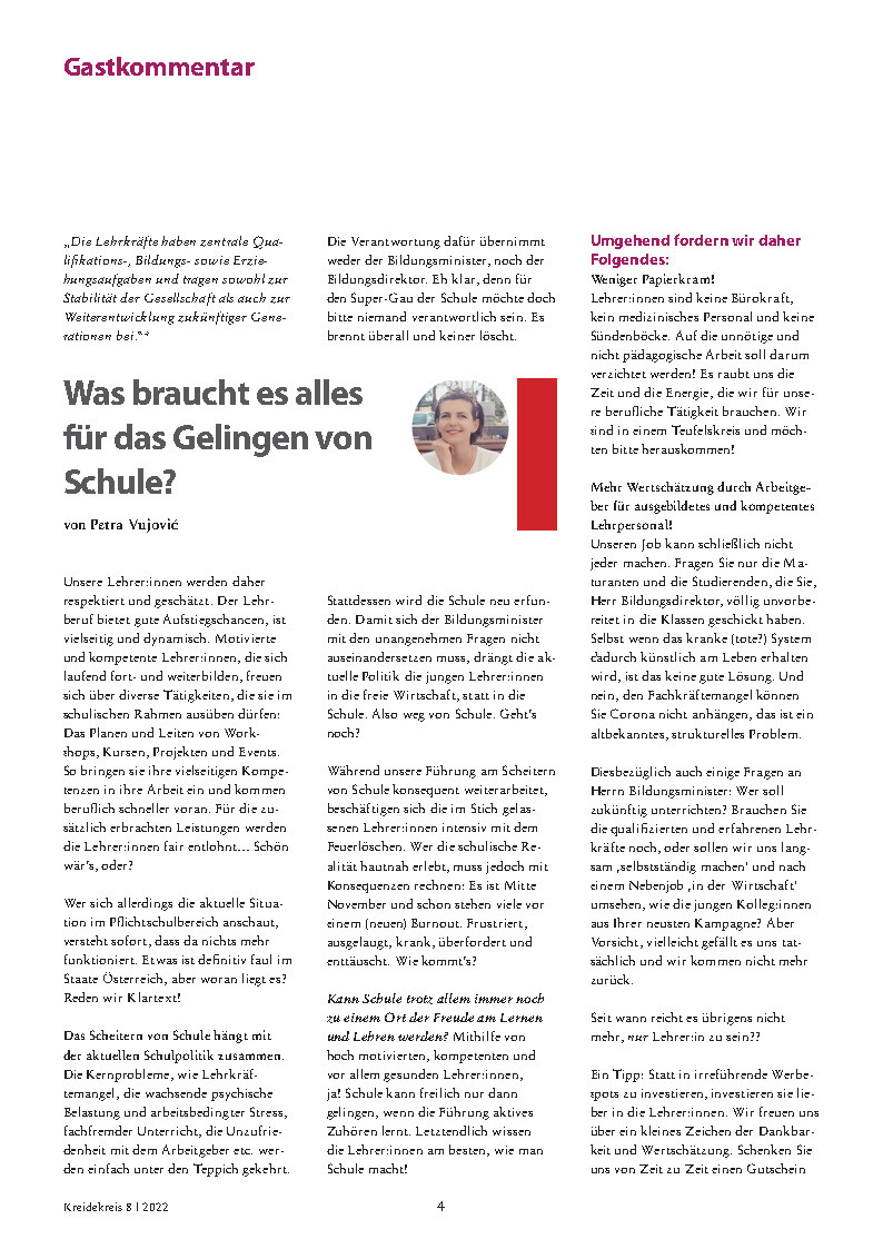 "Was braucht es alles für das Gelingen von Schule". Ein durchaus gelungener Gastkommentar von @petra_vujo.