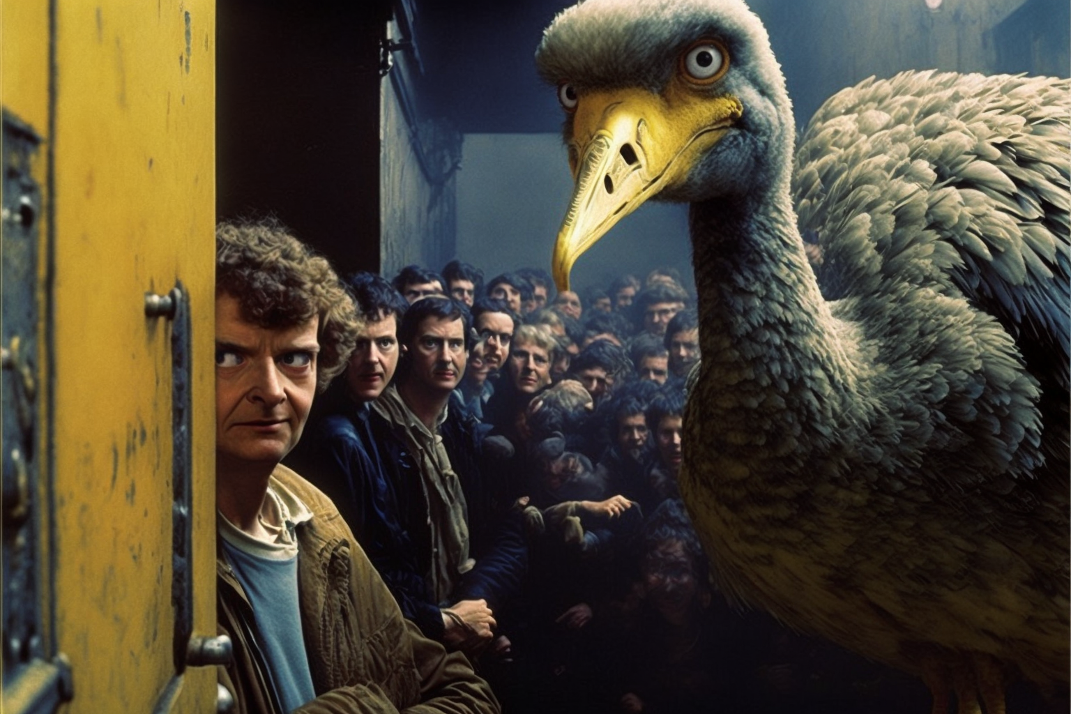 'a scene from the 1986 action thriller Big Bird by Terry Gilliam'