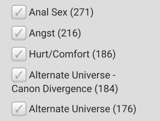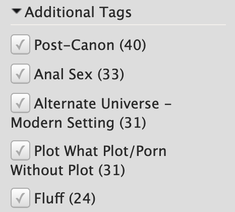 Top 5 fics additional tags of your :ao3: #ao3Bookmarks, go!