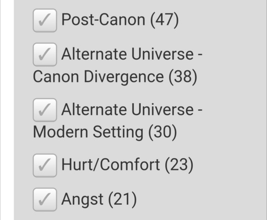 Okay I'm doing the #FandomMeme thing, here's the top additional tags from my #AO3Bookmarks.