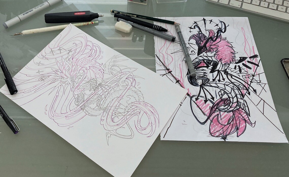 The sketch was done as part of another commission for her but she wanted to keep it for this.