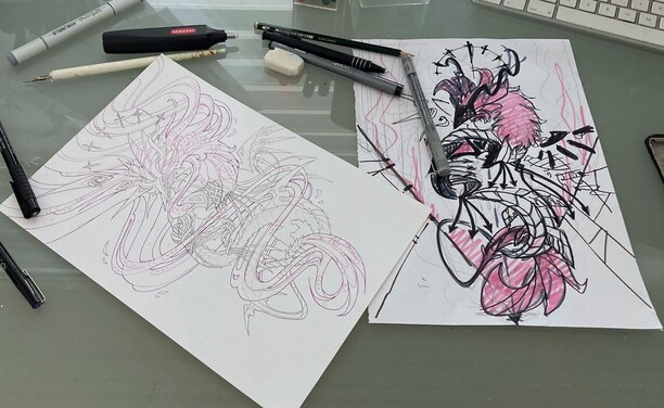 #traditionalmedia #TraditionalArt #commission #draft #MastoArt #fantasycharacter #fantasyillustration #creature #fantasy #wip #workinprogress #drachenmagier