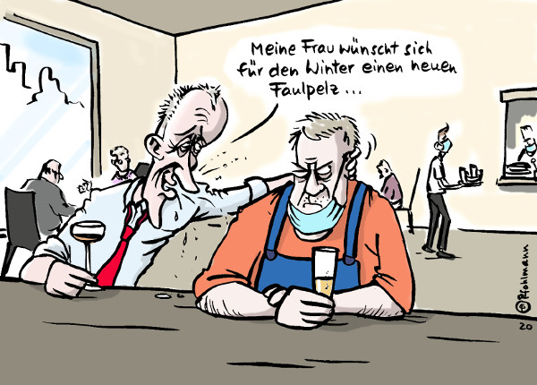 #merz #cdu #kanzlerkandidat #kapitalismus #arbeit #arbeitszeit #kurzarbeit #coronakrise #coronapandemie #wirtschaft #wirtschaftspolitik #reichtum #pelz #faul #faulpelz #cartoon #karikatur (c) www.pfohlmann.de