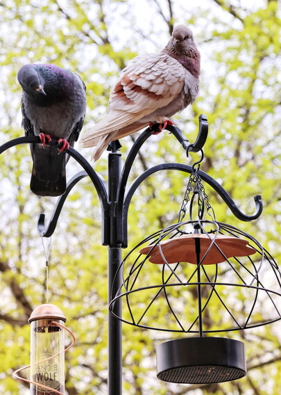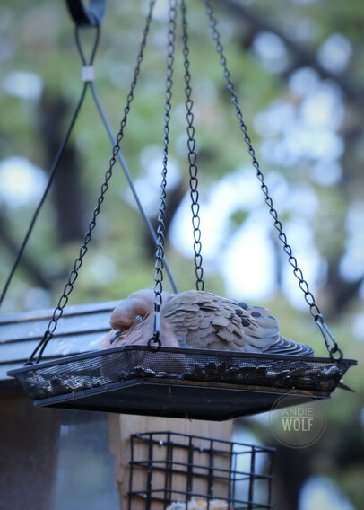 Gilligan and Ginger over here trying to figure out how to get past the new 'cage' I put around the feeder..