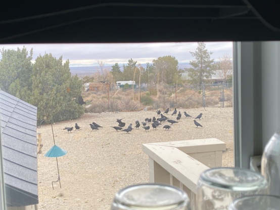 @redcrew Not every day, no. When I fill the feeders, I put out a tin can full of "Don Roberto Game Bird Food" & the ravens seem to have discovered it. It's not unusual to see 40+ quail, but this many ravens is new. They started doing this a month or so ago, so I don't know what changed. #Feederwatch tells me "that's an unusual number of ravens". Indeed it is!