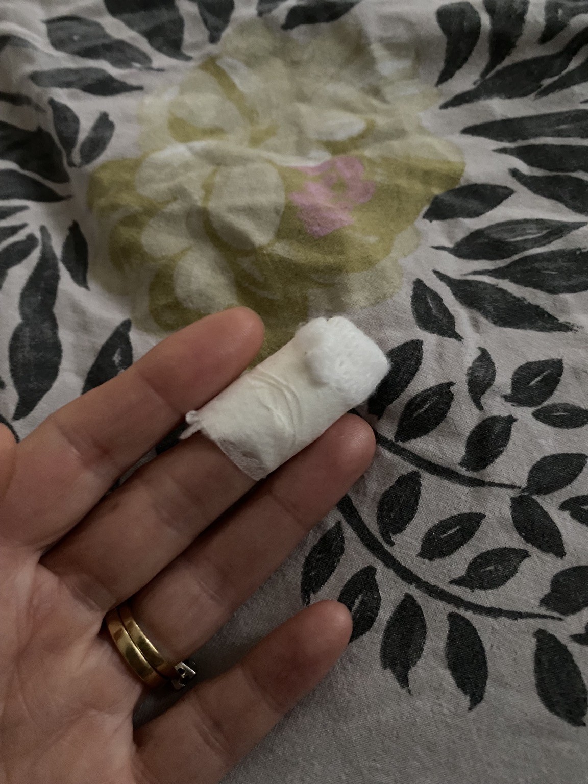 Foolishly using a bread knife to find out what was inside an old cardboard tube before it went to recycling… hubby warned me… #EduTooter #Saturday #FeelingSorryForMyself.