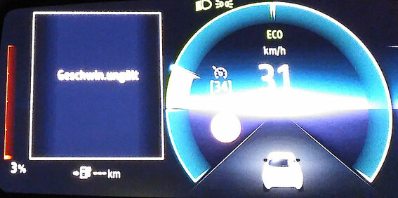 "Geschwin.ungült" sagt der Renault Zoe, wenn man den Tempomat auf unter 30 km/h bekommen möchte.