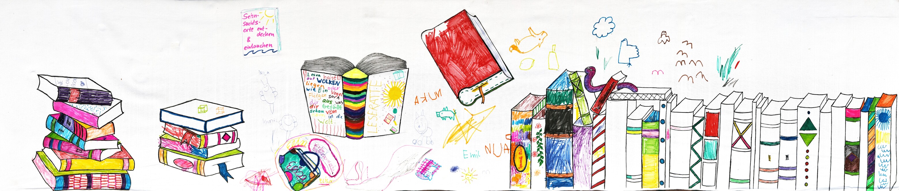 "Lesen heißt auf Wolken liegen, oder wie ein Vogel fliegen, such dir aus was dir gefällt, schau von oben in die Welt"