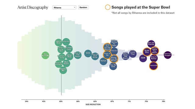 Catch the #FentyBowl last night? Our 2017 analysis of pop music repetition found that Rihanna was one of the most repetitive artists in our dataset. But who cares when it’s bop after bop after bop? https://pudding.cool/2017/05/song-repetition/
