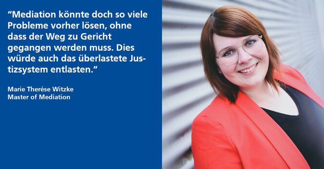 #FernUni-Alumna Marie Therése Witzke mediiert aus Überzeugung 💪. Der Weg zu Gericht könnte vielen Streitenden durch konstruktive Gespräche erspart bleiben. Warum das in der Praxis oft nicht klappt,...