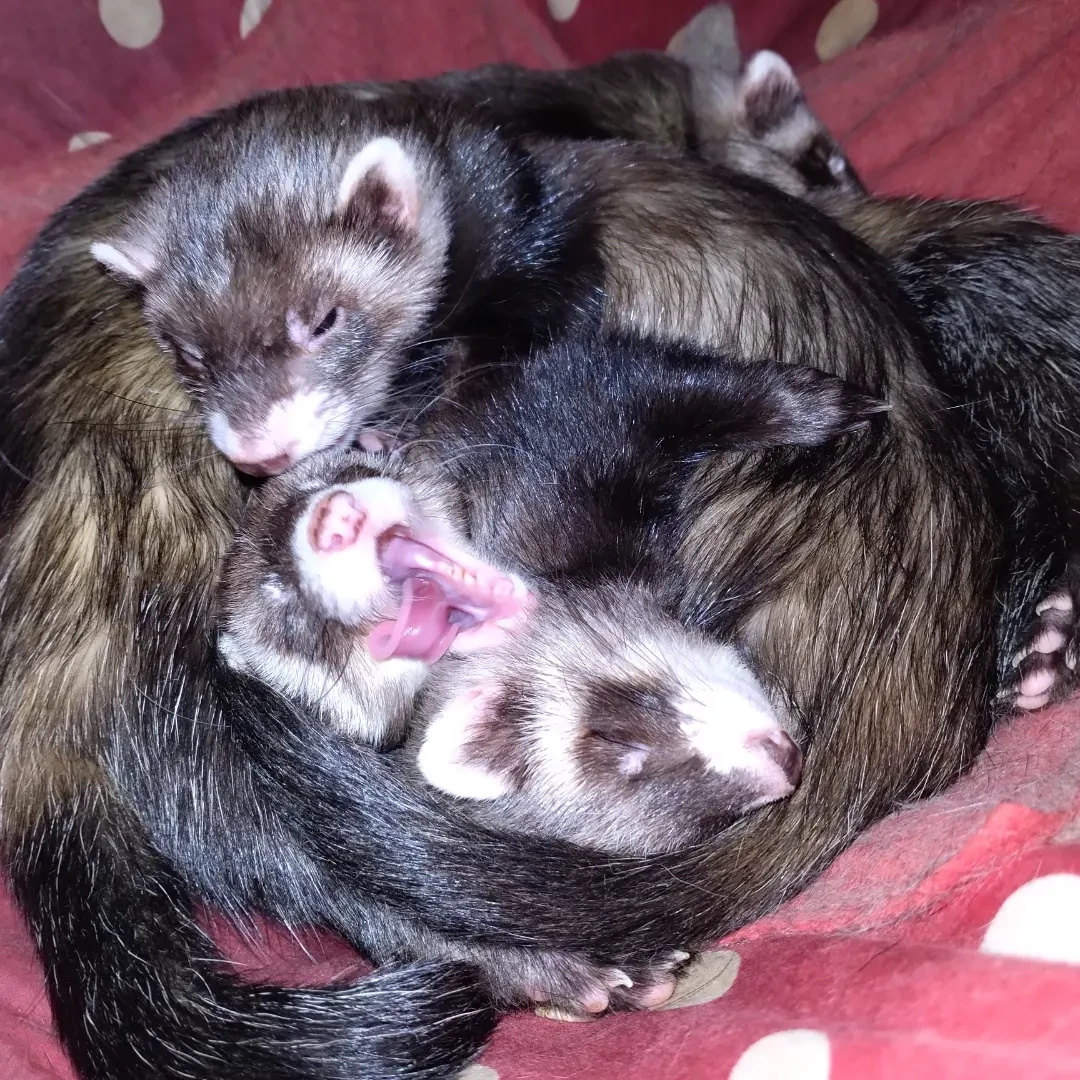 When I need comforting or need to de-stress, I snoggle my wezuls. I call it Ferret Therapy. I go find a ferret and bury my face in their belly. More than one at a time if I can. #Ferrets #FerretsOfMastodon