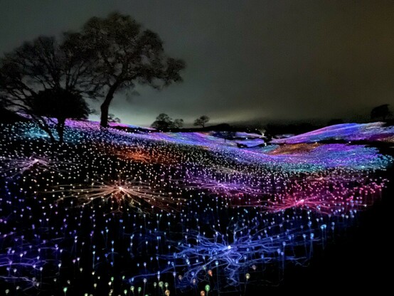 my bf and I went to the #FieldOfLight exhibition and we loved it. It's a shame it was so cold because I was ready to stay there for hours! #AustinTX #BruceMunro https://www.fieldoflightaustin.com
