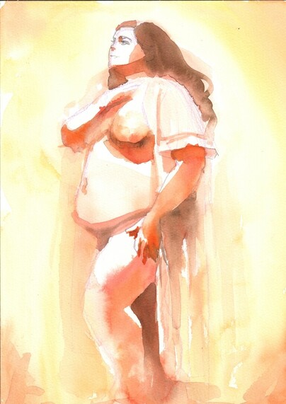 Alex Powers finally helped me connect the dots between using shapes, value and edge control when painting figurative art. I'm so glad I finally got a day without brain fog so I could read his amazing book (Painting People in Watercolour - A Design Approach) and apply it immediately! #mastoart #practice #watercolour #figureart