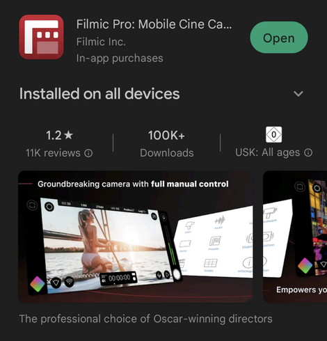 Wow! The subscription move by Filmic Pro really let the PlayStore rating tank ... 😱 Users seem to be enormously upset and angry! #filmicpro #phoneography #videography #smartfilming #PlayStore
