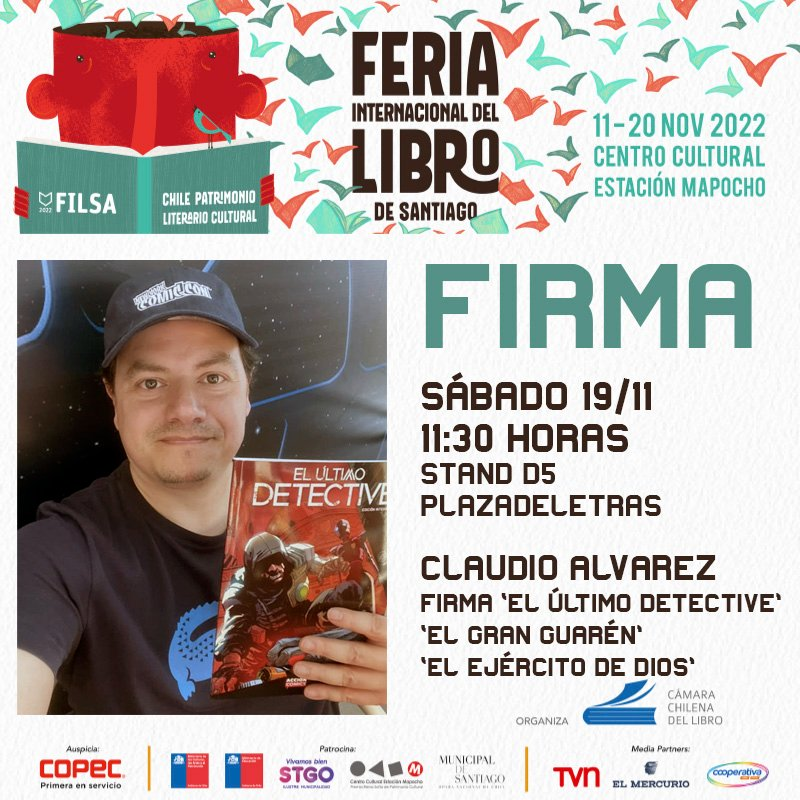 EVENTO 🗓️ | ¡Hoy @claudioalvarez estará firmando en el stand D5 de PlazadeLetras en #FILSA2022! ¡Te esperamos! #comicchileno