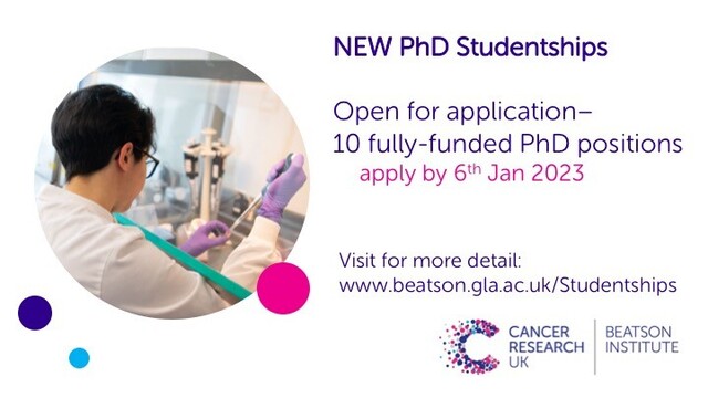 Find out more: https://beatson.gla.ac.uk/Education/Studentships/