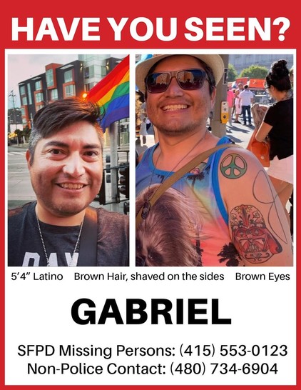 A close friend of mine, Gabriel Flores, has gone missing. He does not have his phone. Last contact Nov 15, 2022 in San Francisco, CA. Any tips, DM, call or text.