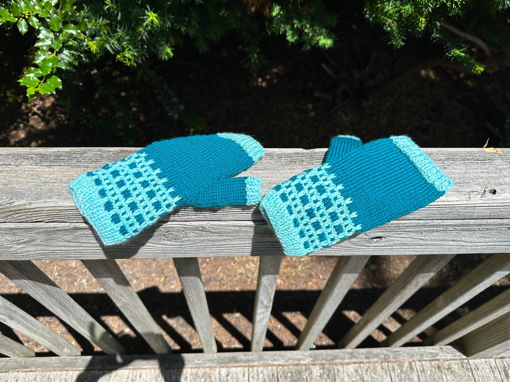 I made these fingerless mitts recently. It's a fun pattern and works well for 2AAT knitting. I wrote a short blog post about it which can be found here: https://www.angelaknitsnow.com/projects/knit-two-at-a-time-with-sojourn-mitts/