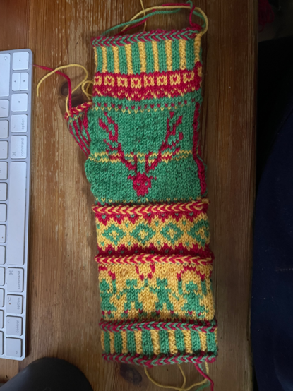 Is like #finishingthingsFriday a thing? I finally picked up the mittens I started knitting in February, reckoning I had plenty of time till Boxing Day. I have now finished *one* of them. #MorrisDancing #fingerlessmitts