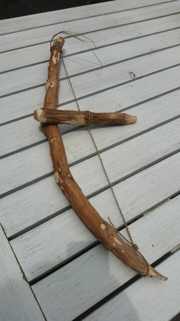 Baby's first work in progress #FireDrill for #StoneAgeSaturday. Yucca bowstring, plum spindle, and municipal garden waste bow. I still need to finish the spindle and make a bearing block before I can potentially use this to start a fire. #NeolithicTech