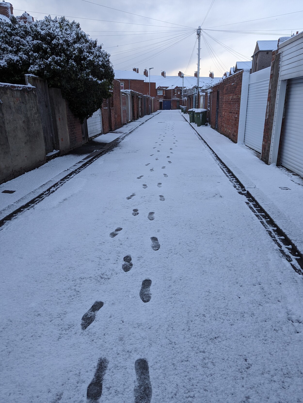 Schoolrun taxis is up and out early, probably wrapped up well.