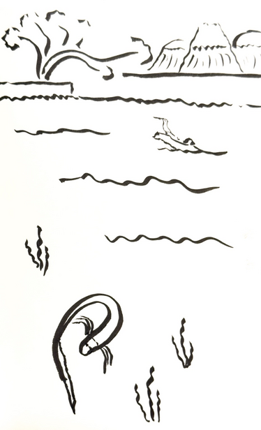 These crudely-drawn fish were created using a color-modified photo of a peel-y thumbnail for the background and the iphone drawing tools in the iphone photos app. Hard to get things precise when drawing with one's fingers on an iphone screen, but I think the fish are still cute!